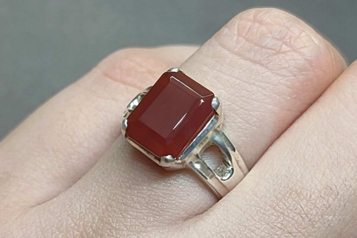 Brown Agate Women Ring – Natural Yemeni Carnelian Handmade Solitaire Aqeeq Jewelry, Sterling Silver 925, 14k & 18k Gold