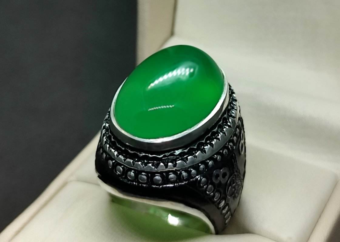 The green agate jewelry is untreated, which preserves its natural strength and energy. As a result, it promotes confidence, courage, and inner harmony. Additionally, collectors of carnelian rings in Islam and enthusiasts of green agate jewelry will value its meaningful symbolism. Furthermore, green agate, also known as green carnelian, enhances both elegance and spiritual balance when worn daily.