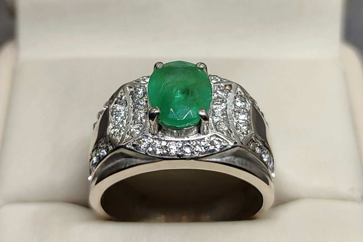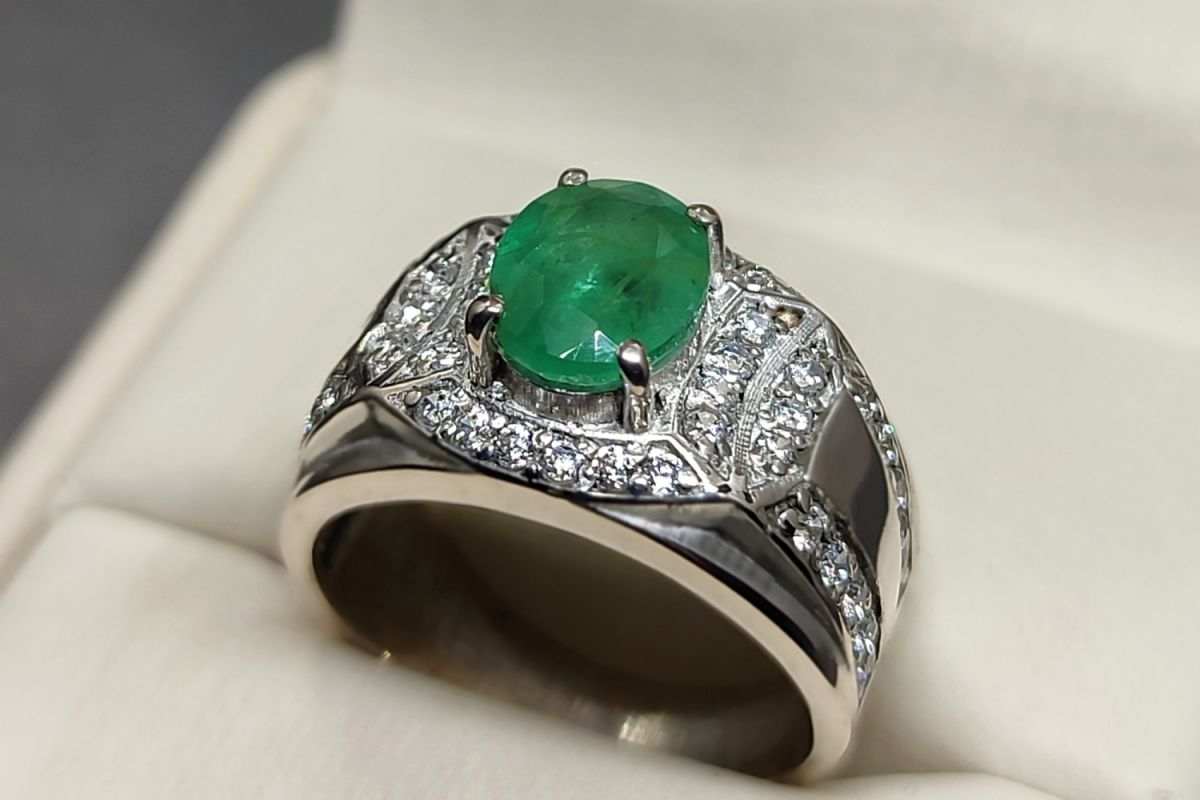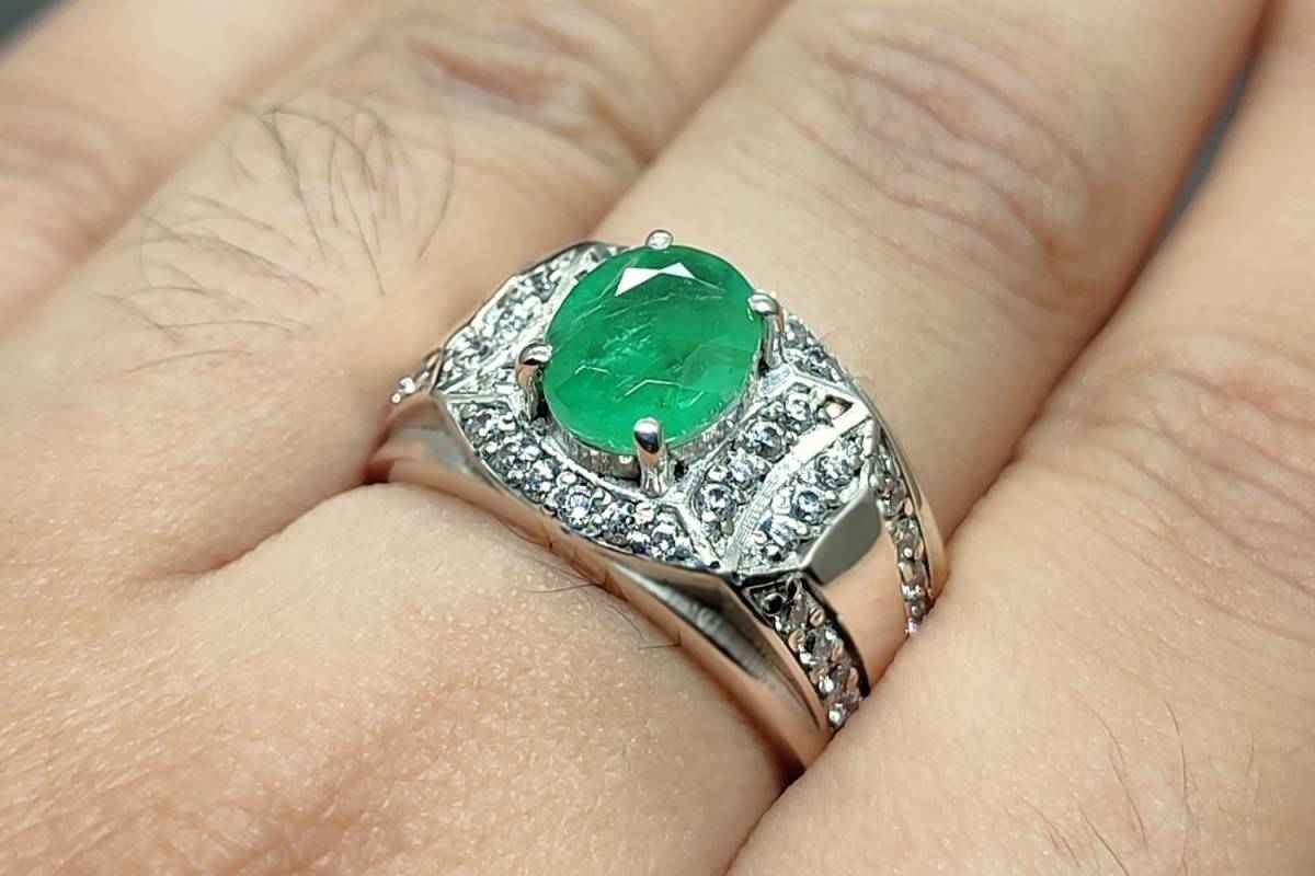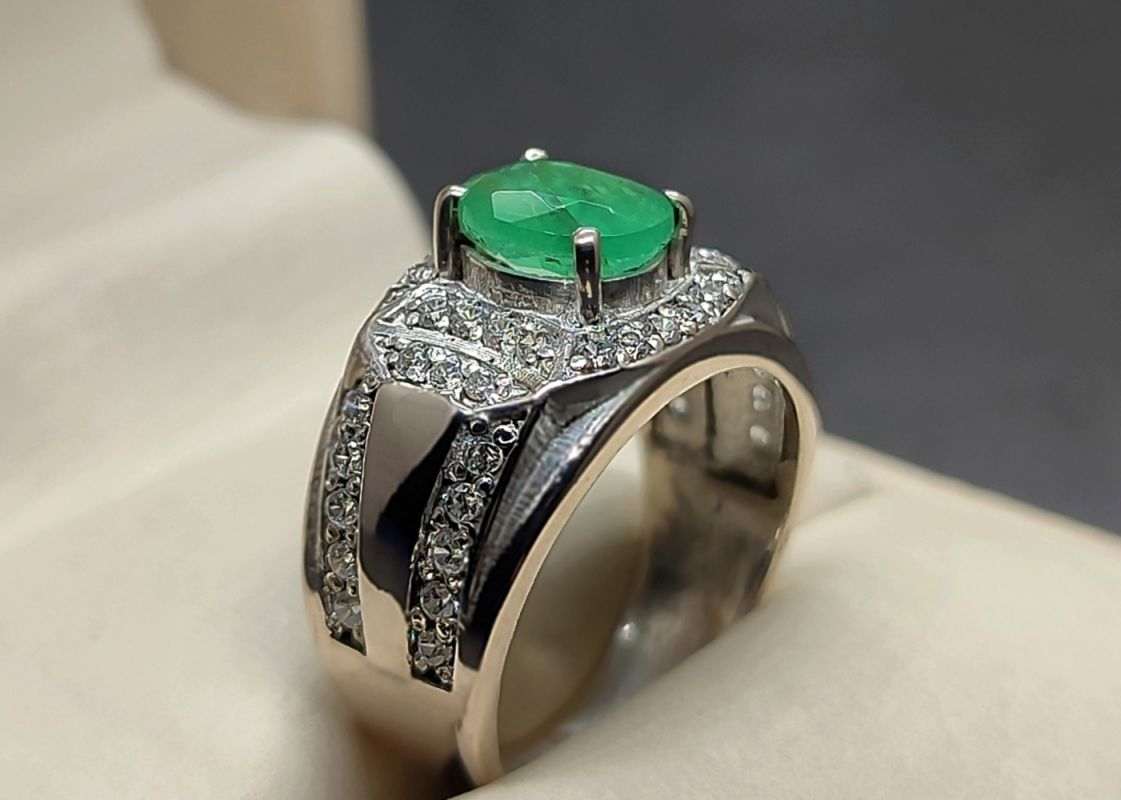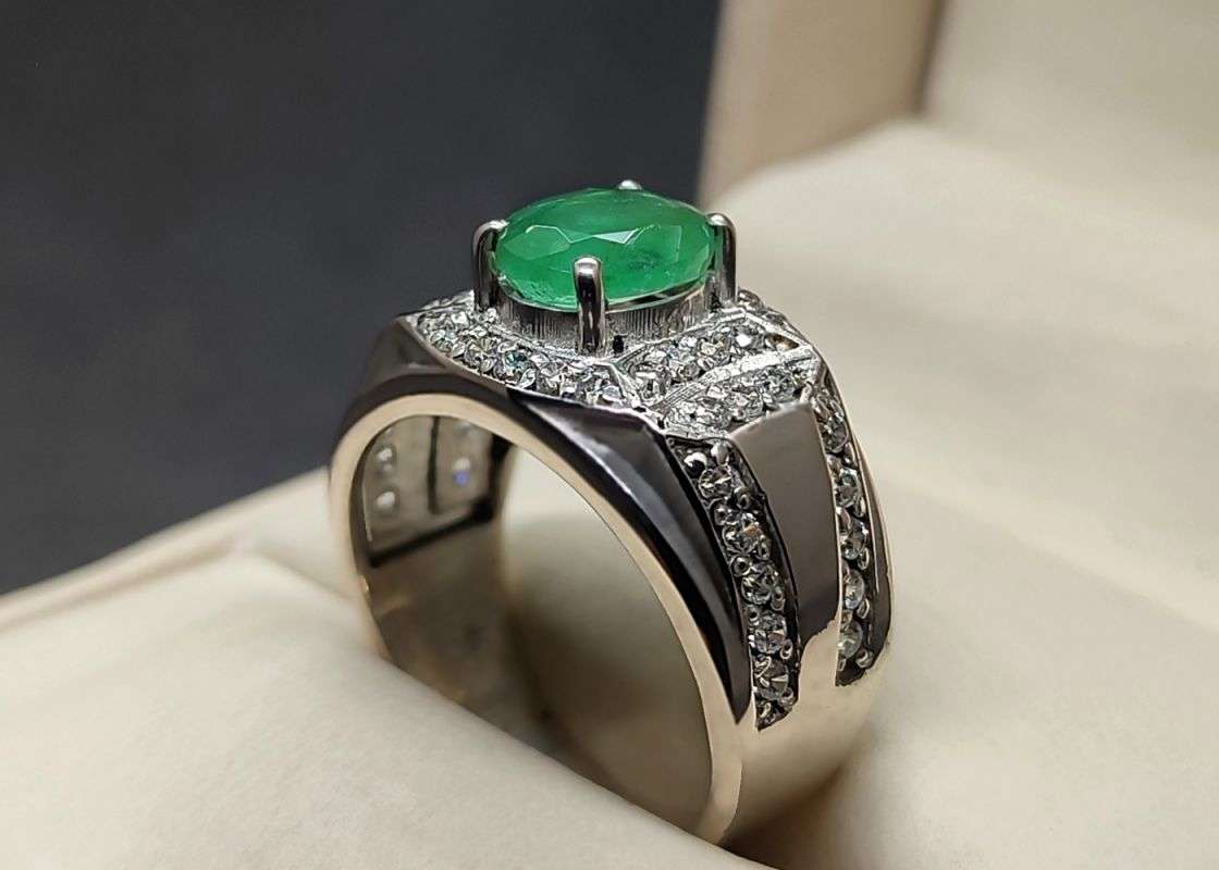 Natural Rare Rich Green Zambian Emerald Sterling Silver 925, 14k, 18k Gold Handmade Mens Channel Set Ring