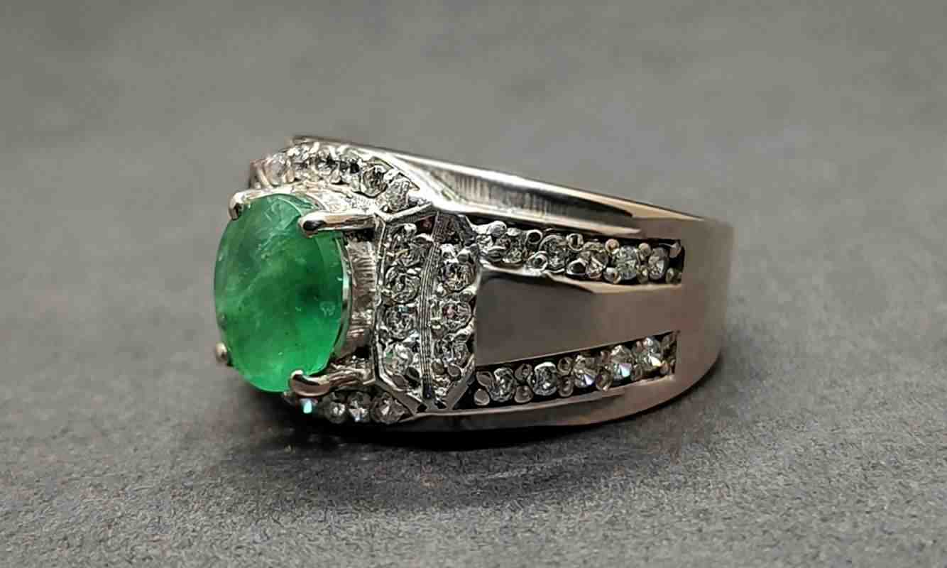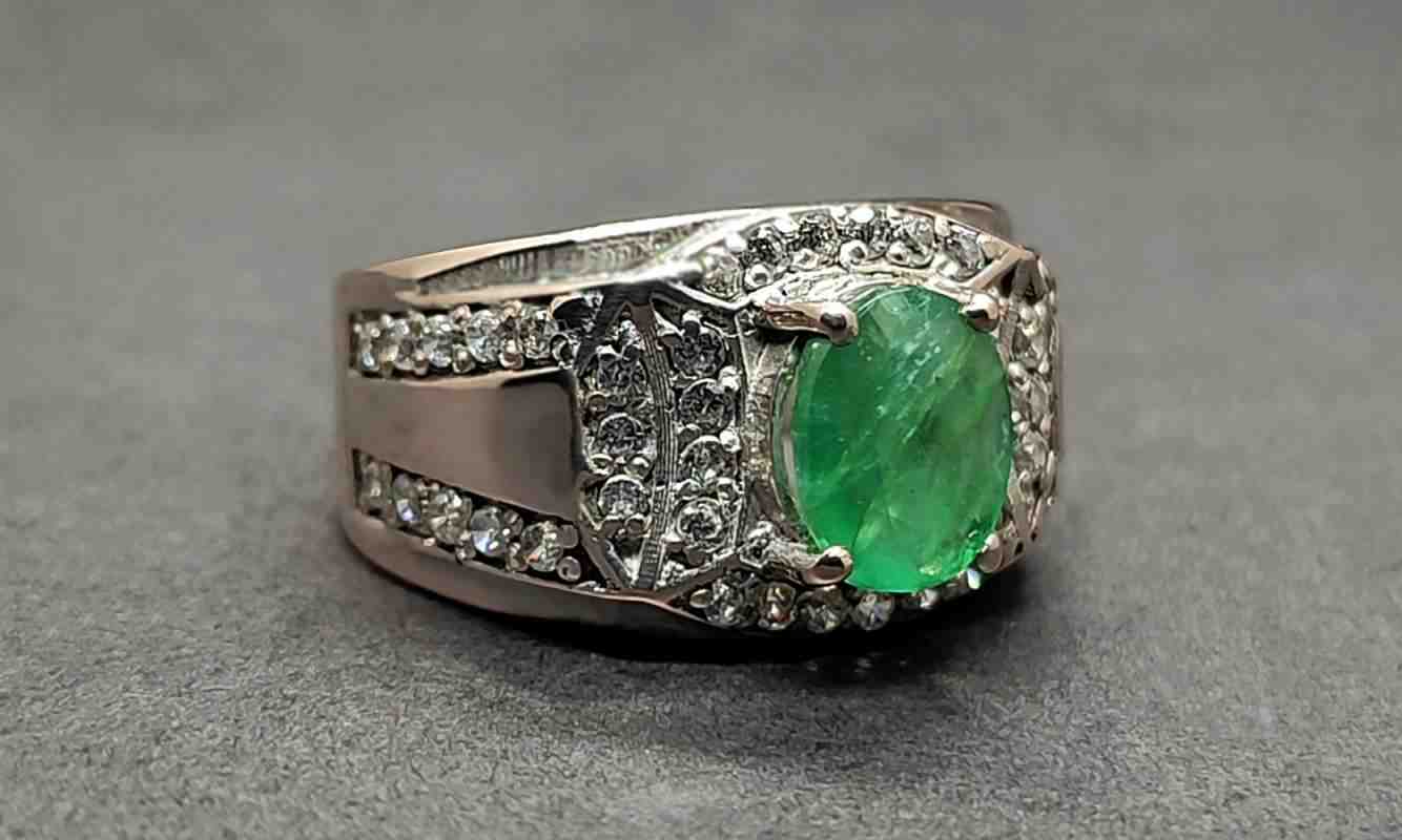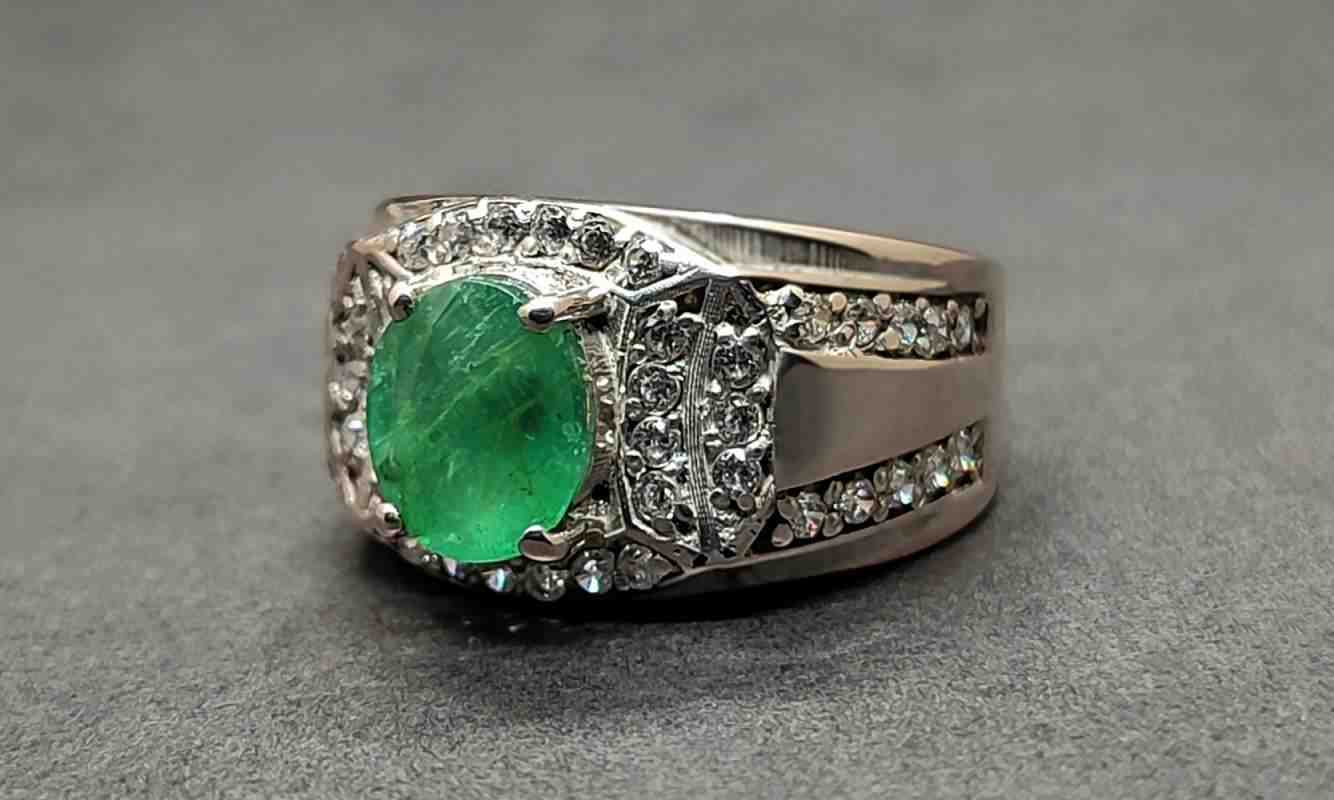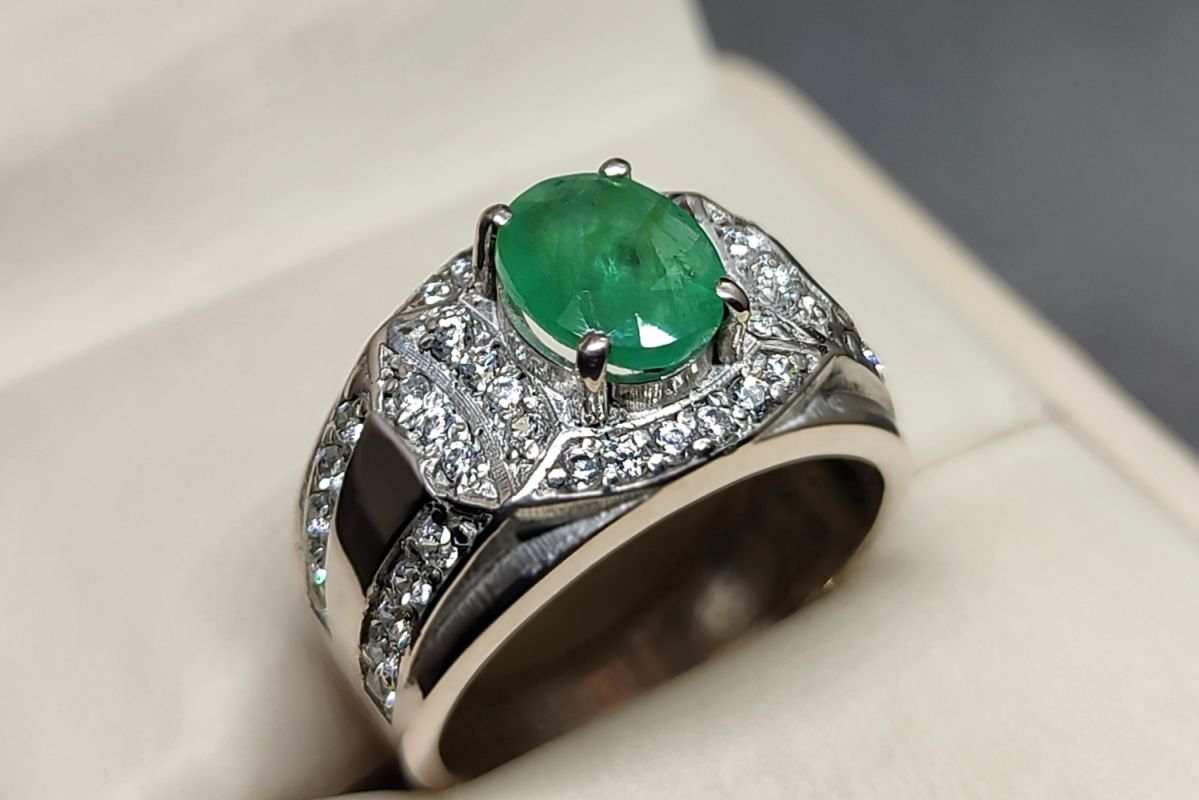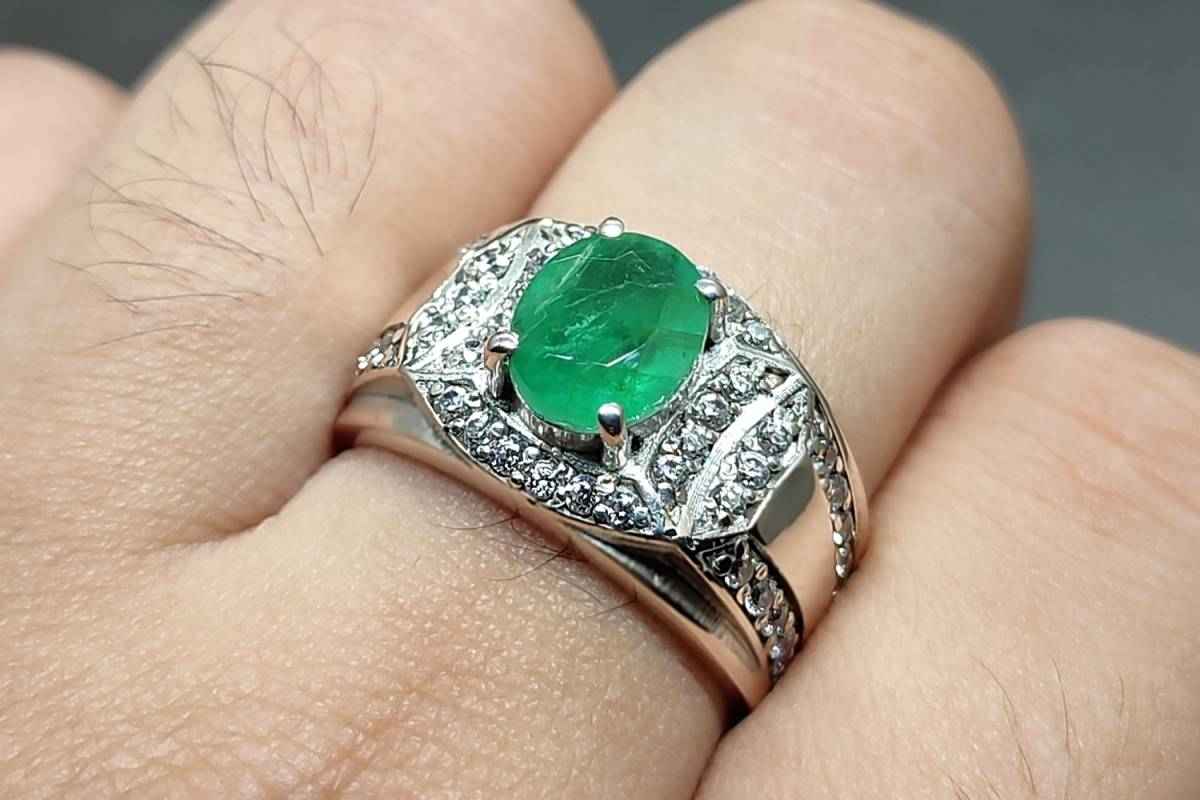 Natural Rare Rich Green Zambian Emerald Sterling Silver 925, 14k, 18k Gold Handmade Mens Channel Set Ring