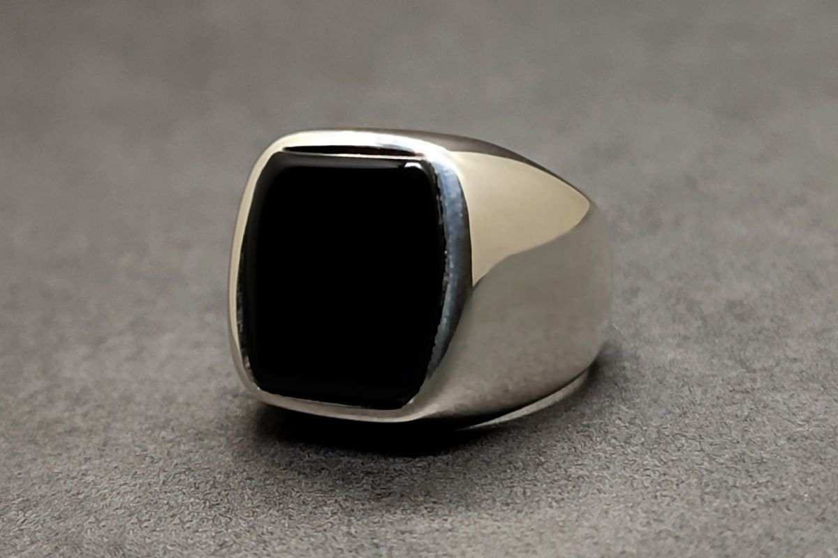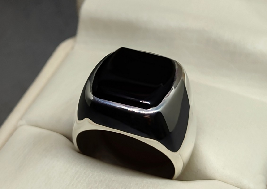 Because of its natural composition, the Yemeni Black Aqeeq↗ gemstone is believed to offer grounding and calm energy. In addition, it is a January gemstone and the Capricorn birthstone, symbolizing endurance, wisdom, and protection. Similar to black onyx jewelry↗, it carries a deep spiritual meaning, which adds emotional and personal value to this luxurious men’s ring.