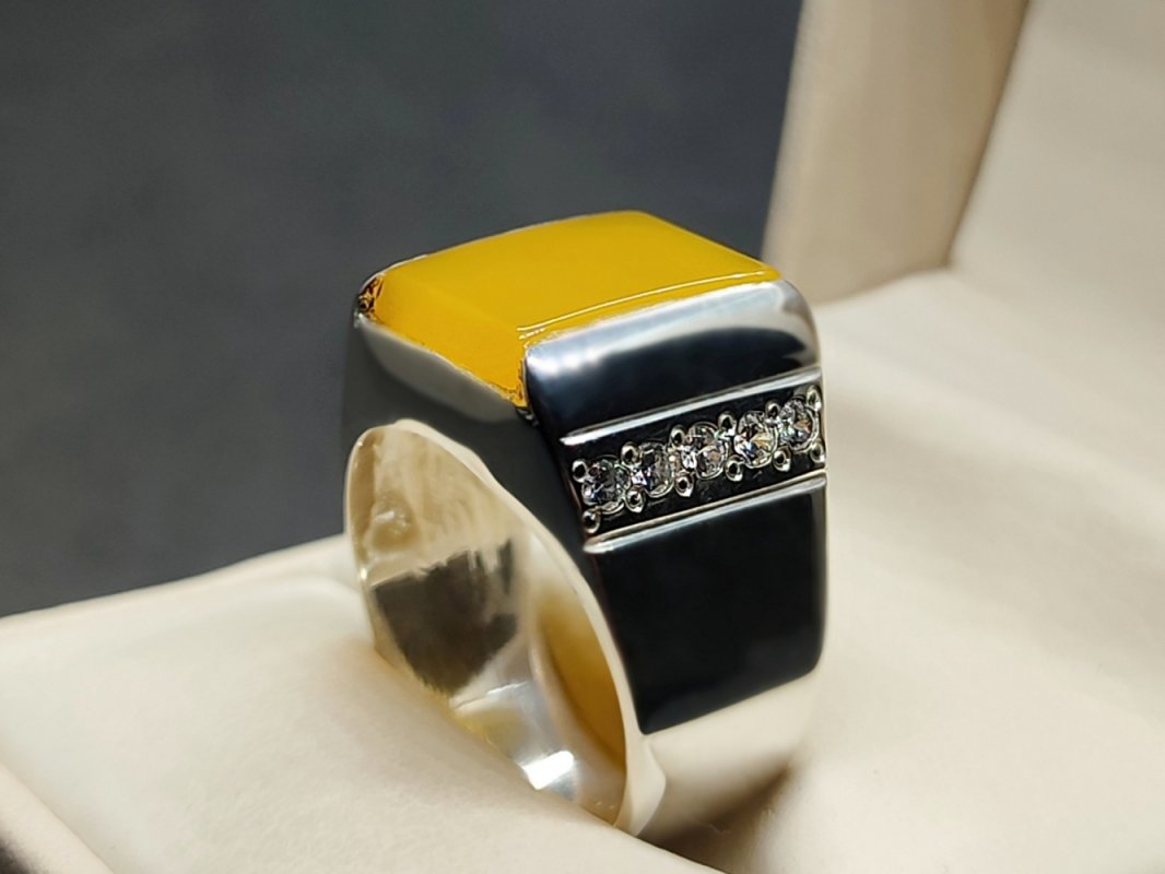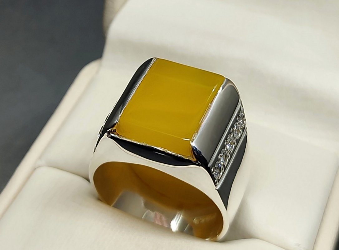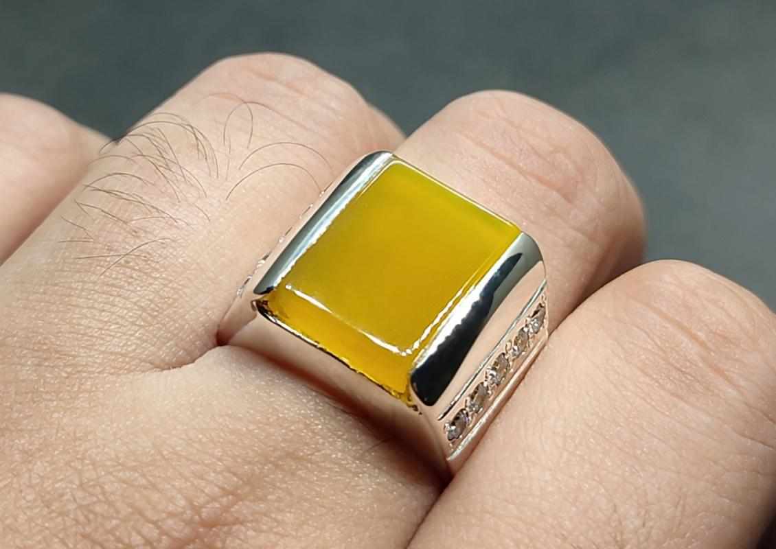 Each yellow carnelian agate is ethically sourced from Yemen, where the finest natural agates are found. Because it remains untreated, the stone keeps its full brilliance and energy. In addition, many believe that the yellow hakik ring enhances self-esteem and emotional harmony. Therefore, it’s an excellent choice for anyone seeking positivity and personal growth.